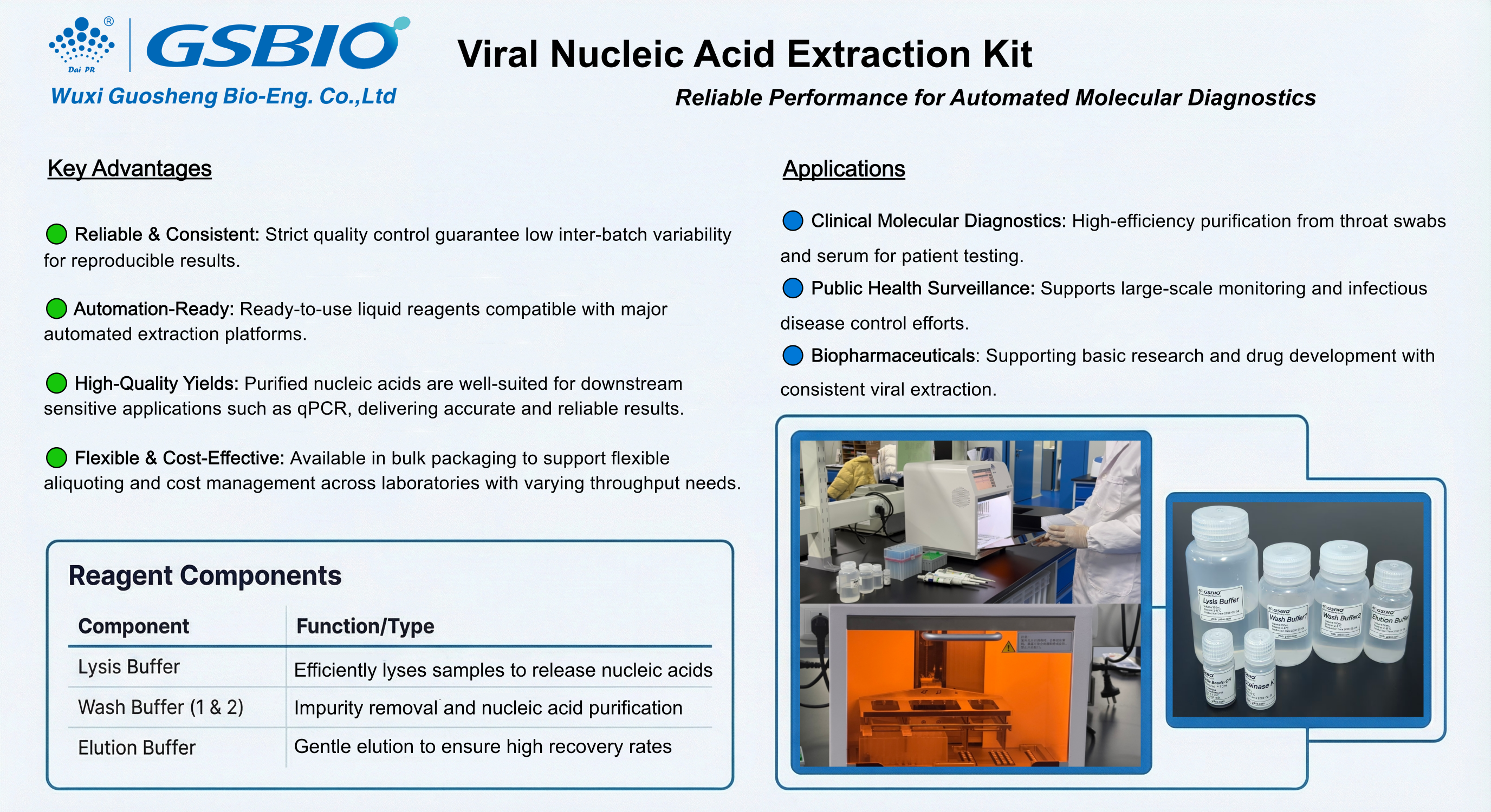 2. Automation-Ready: Supplied as ready-to-use liquid reagents, the kit is compatible with major automated extraction platforms, enabling streamlined workflow integration.